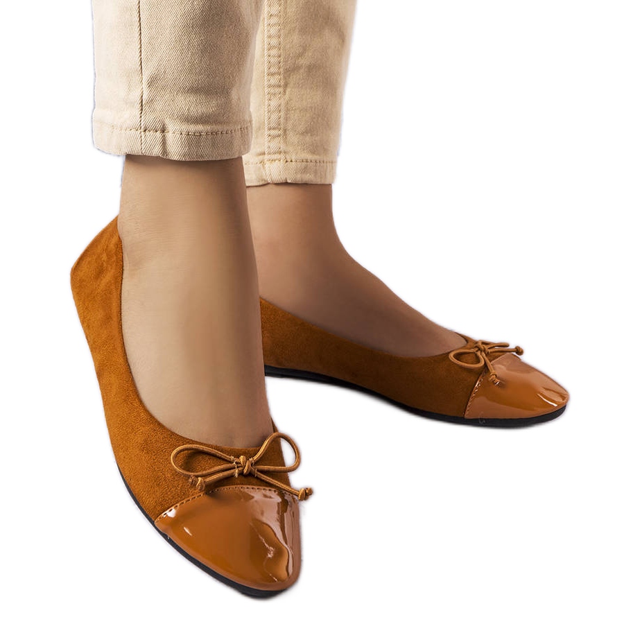 Inna marka Brązowe balerinki z lakierowanym noskiem Simard