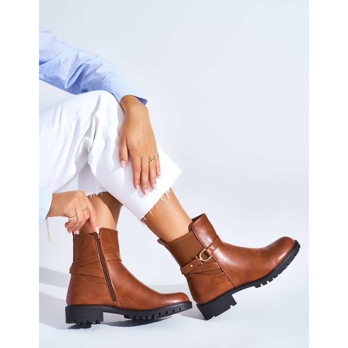 Inna marka Brązowe botki damskie z ozdobną klamrą