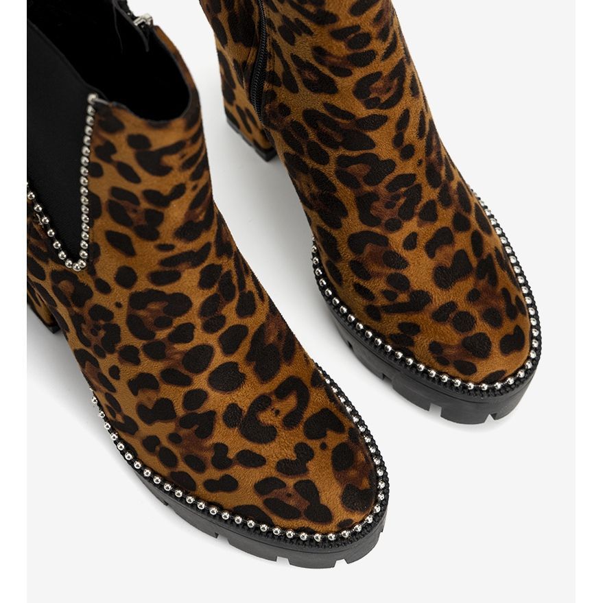 Szczegóły: Brązowe botki na słupku w motywie panterki Leo