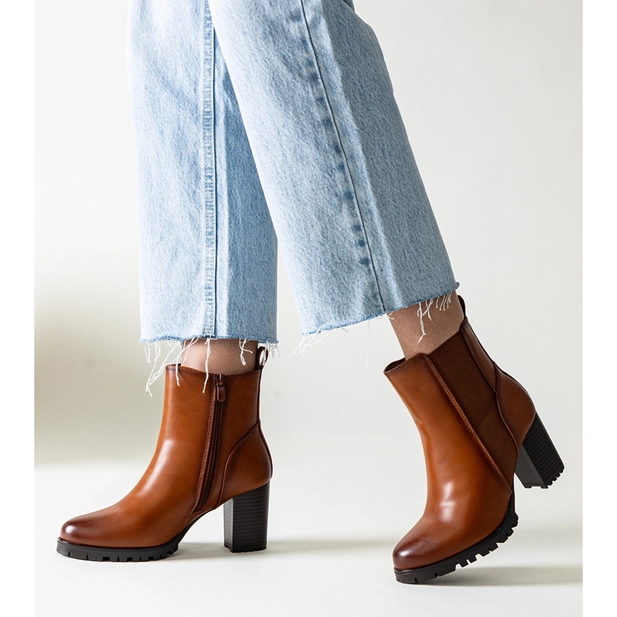Szczegóły: Brązowe botki na słupku z eko skóry Zinah