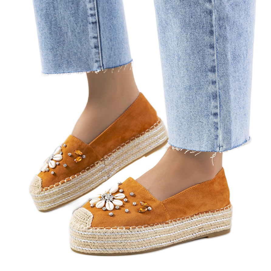 Szczegóły: Brązowe espadryle na grubej podeszwie Mrs Nicki żółte