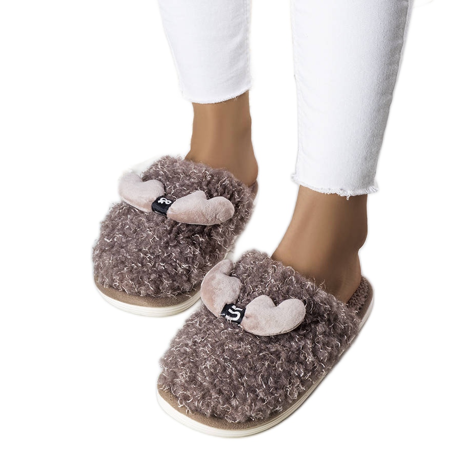 Szczegóły: BM Brązowe kapcie z futerkiem Rosny