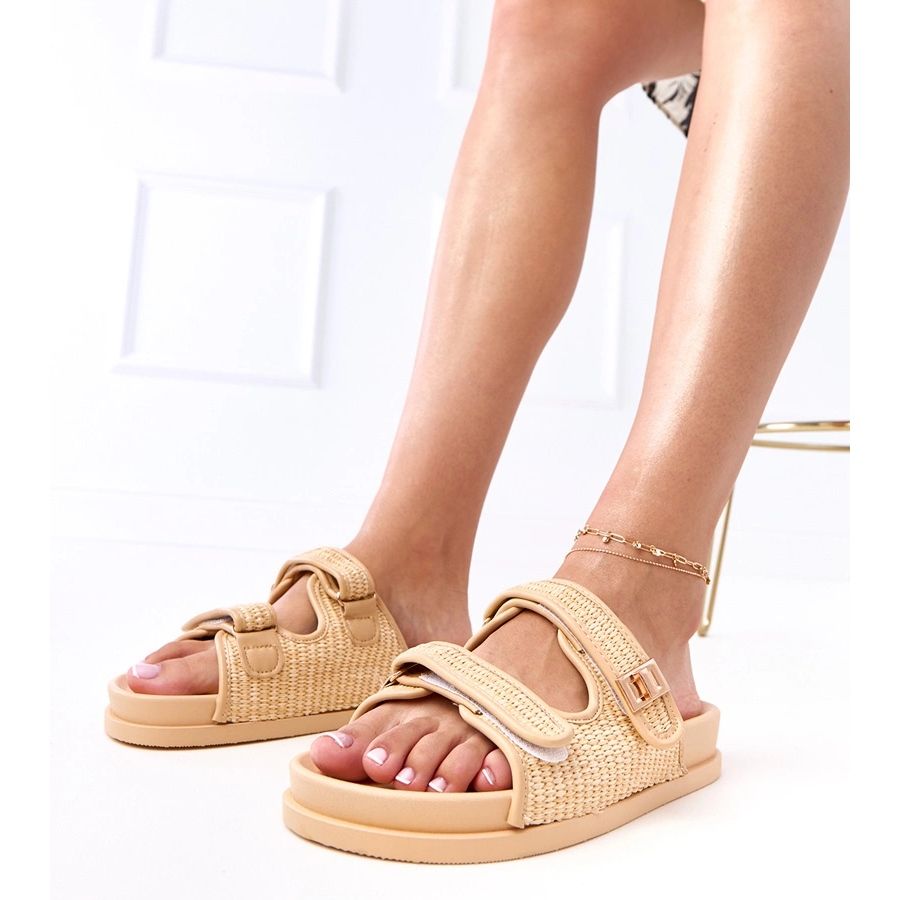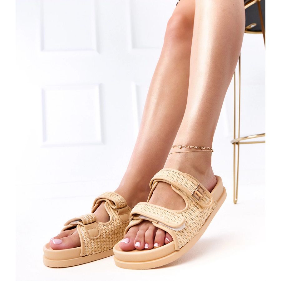 Inna marka Brązowe klapki szydełkowe z regulowanymi paskami Kliris