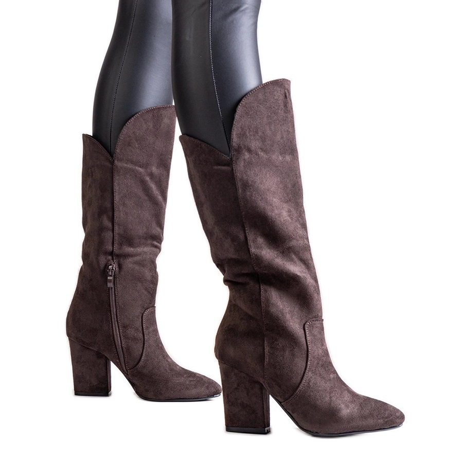 - Model: Brązowe kozaki na słupku