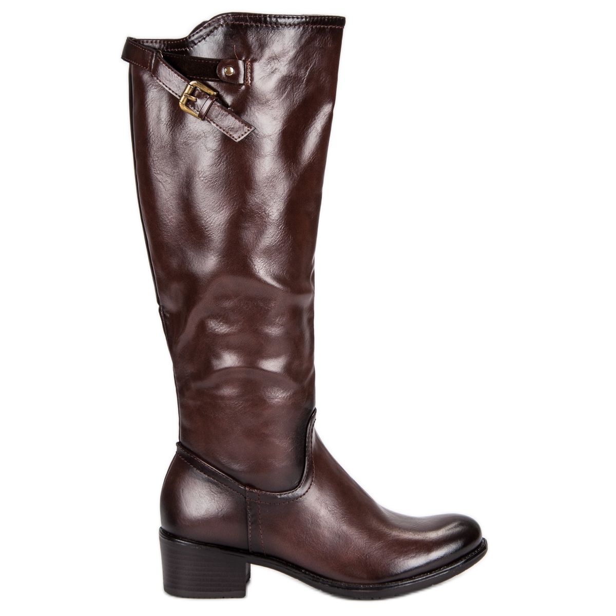 Brązowe kozaki VINCEZA to doskonała propozycja dla kobiet, które poszukują połączenia stylu i wygody. Wykonane z wysokiej jakości skóry ekologicznej, te kozaki w kolorze ciemnego brązu są idealnym wyborem na jesień i zimę. Dzięki ociepleniu z koca obuwniczego, zapewniają komfort termiczny, utrzymując ciepło w chłodne dni.