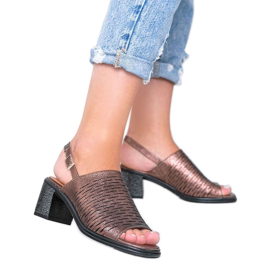 Inna marka Brązowe metaliczne sandały na słupku Cusi