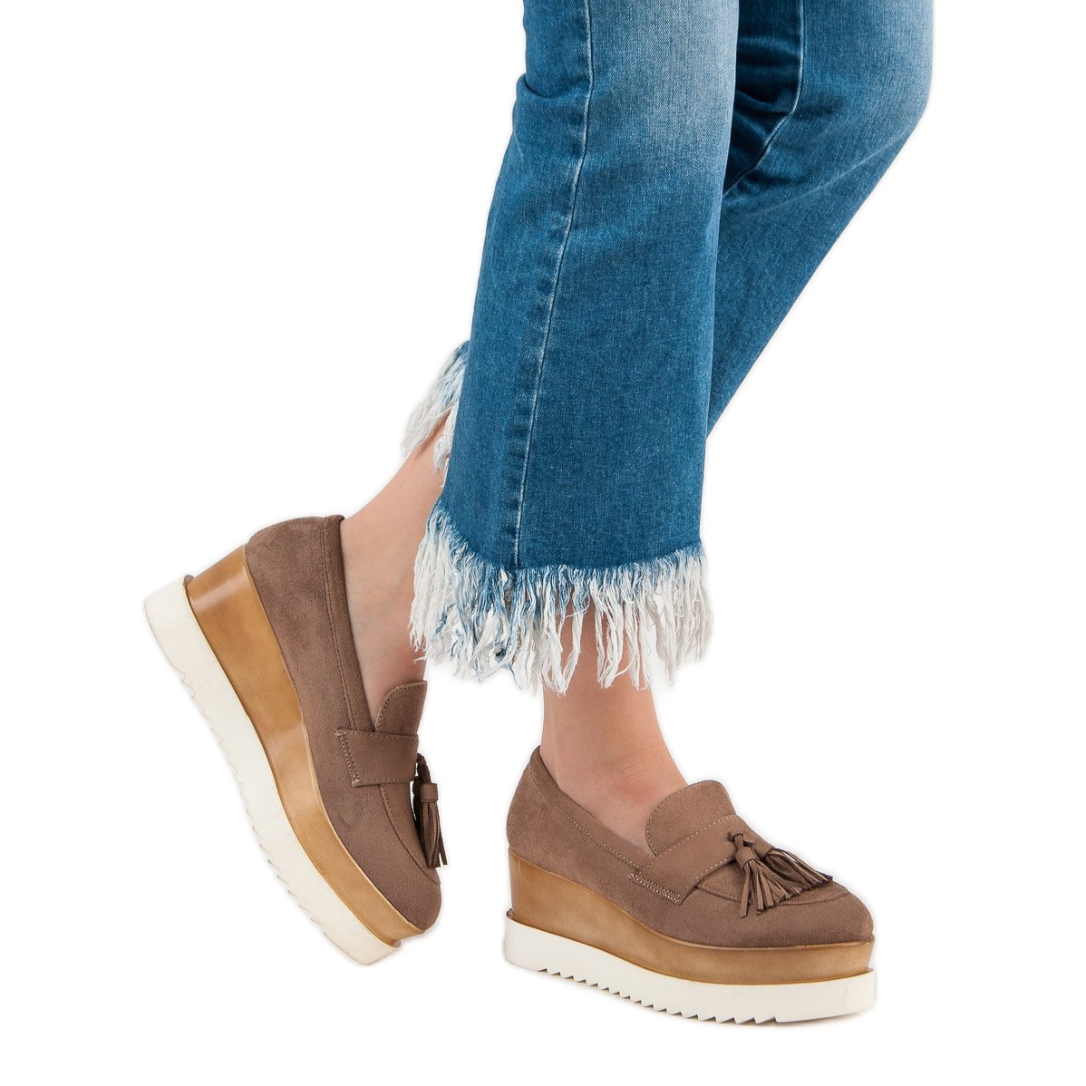 **Corina Brązowe Mokasyny Na Koturnie**