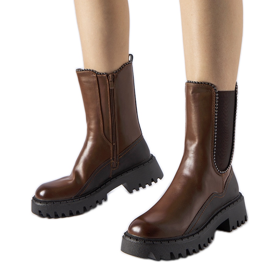 Eleganckie botki Donigala w ciepłym odcieniu brązu łączą nowoczesny, chic design z funkcjonalnością. Wykonane z wysokiej jakości skóry ekologicznej, ocieplone wewnątrz, z praktycznym zamkiem, idealne na jesień i wiosnę — zapewniają wygodę przez cały dzień i dodają szyku wielu stylizacjom.