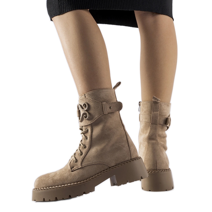 Brązowe ozdobne workery eko-zamsz Castore — styl i komfort na chłodniejsze dni