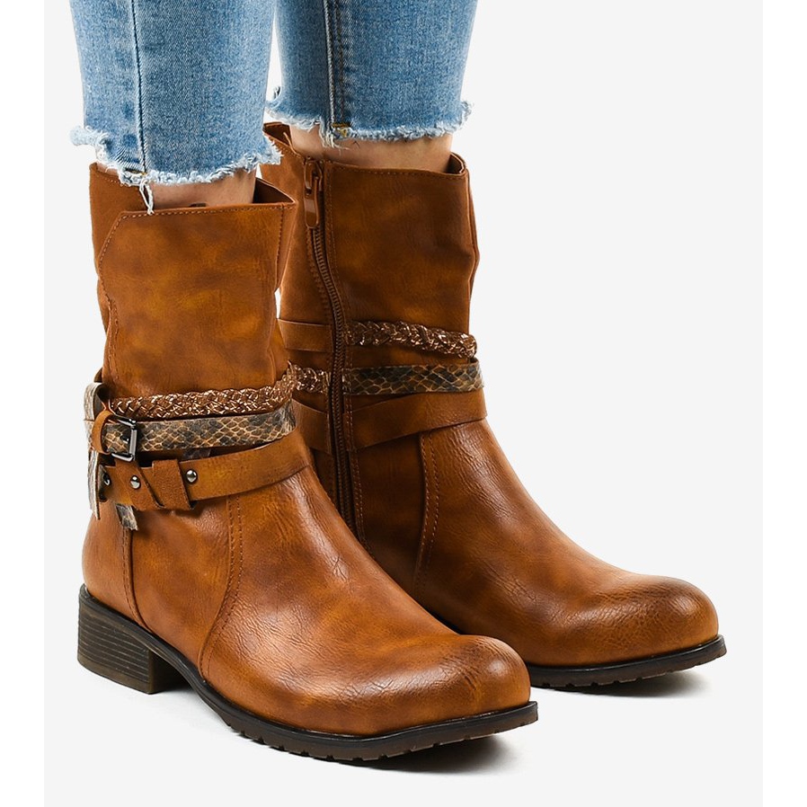 Inna marka Brązowe płaskie botki ocieplane 4440
