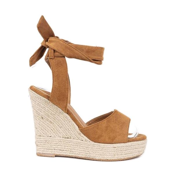 Szczegóły: Brązowe sandały na koturnie Holiday Time