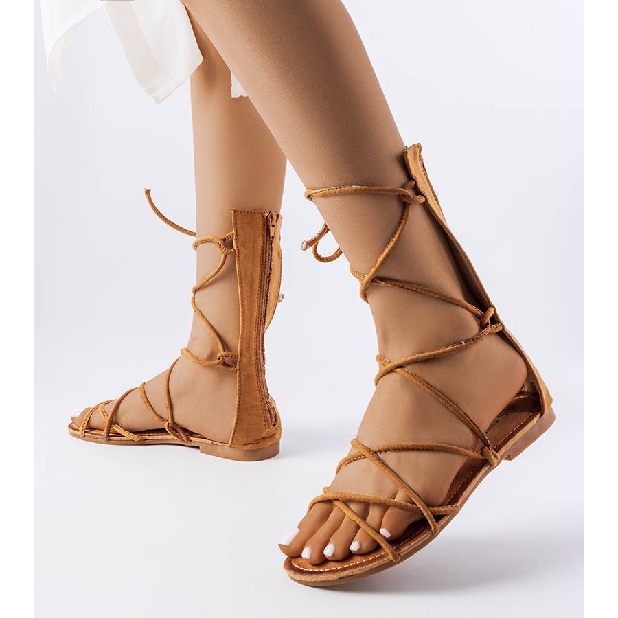 Inna marka Brązowe sandały wysoko wiązane Heliport
