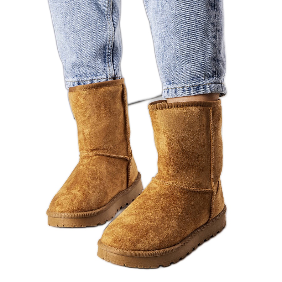 Klasyczne, wygodne i ciepłe – idealne na zimowe, codzienne stylizacje. Śniegowce Hank zostały wykonane z zamszowej skóry ekologicznej w odcieniu camel, a ich wnętrze ocieplono miękkim futerkiem, które zapewnia komfort i ochronę przed chłodem.