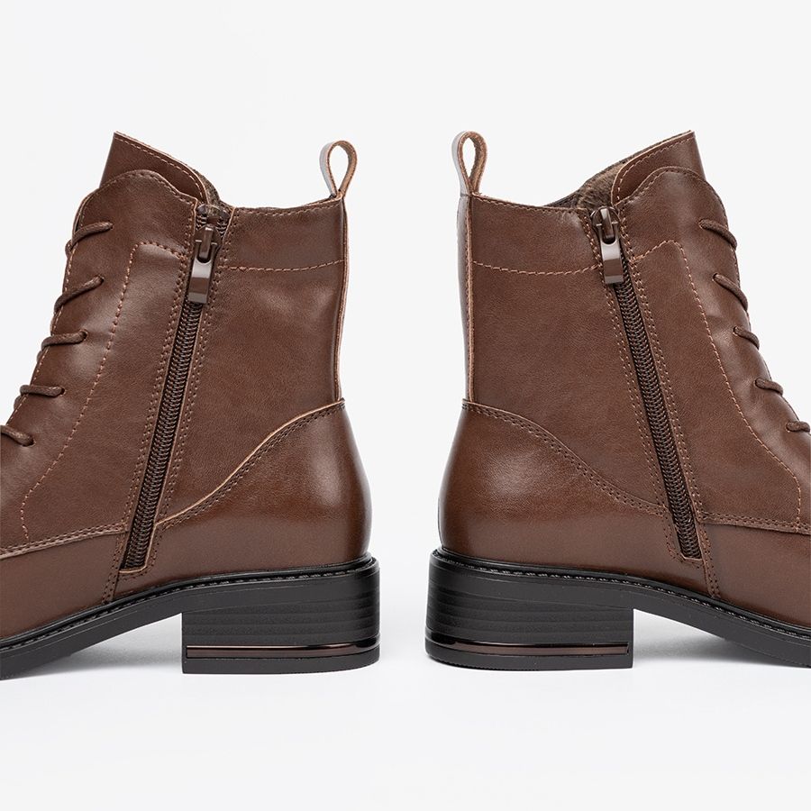 Szczegóły: Brązowe sznurowane botki z niskim obcasem Sergio Leone