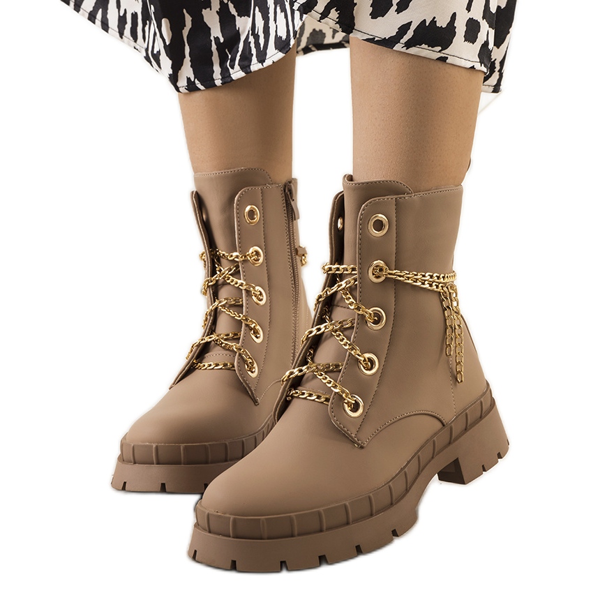 Inna marka Brązowe trapery z łańcuszkiem Alcin