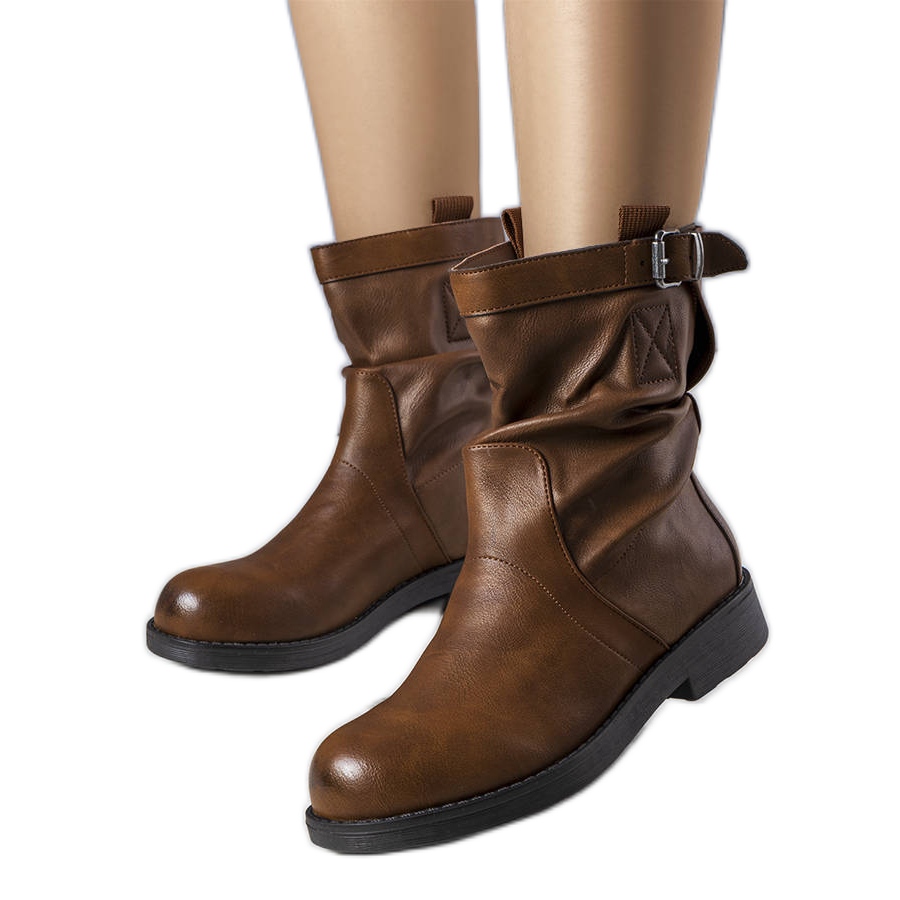 Szczegóły: BM Brązowe wsuwane płaskie botki Charlene