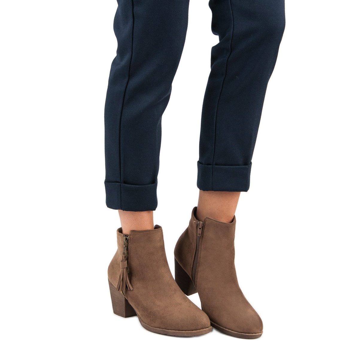 Ocieplone futerkiem oraz wyposażone w wygodną wkładkę, brązowe zamszowe botki są idealne na co dzień, zarówno do pracy, jak i na spotkania towarzyskie. Zabudowany, usztywniony zapiętek oraz okrągły nosek zapewniają nie tylko modny wygląd, ale i komfort użytkowania, nawet podczas dłuższego chodzenia.