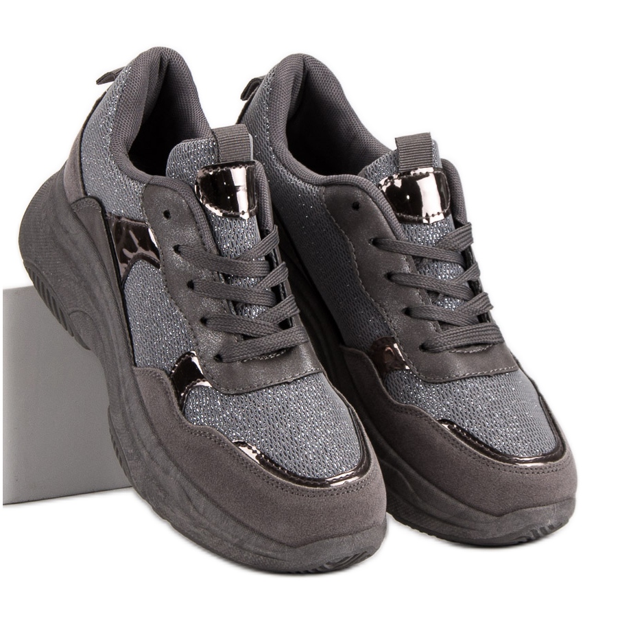 Inna marka Brokatowe Sneakersy Na Platformie szare
