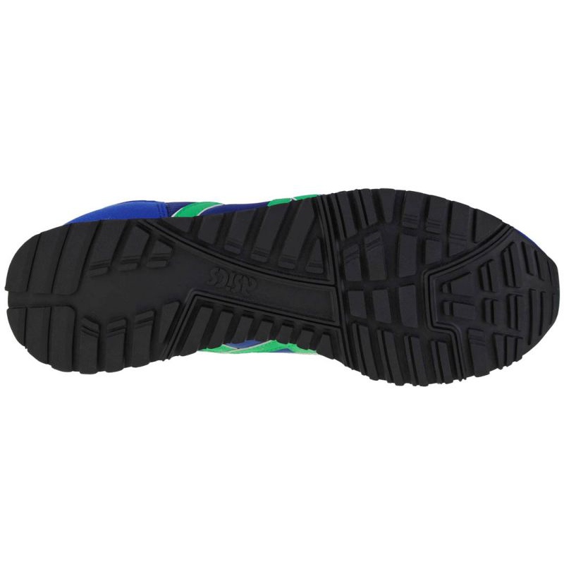 Buty występują w uniwersalnej kolorystyce łączącej odcienie niebieskiego i zielonego, co sprawia, że z łatwością można je dopasować do różnych stylizacji. Widoczne logo producenta podkreśla ich autentyczność oraz przynależność do renomowanej marki Asics.