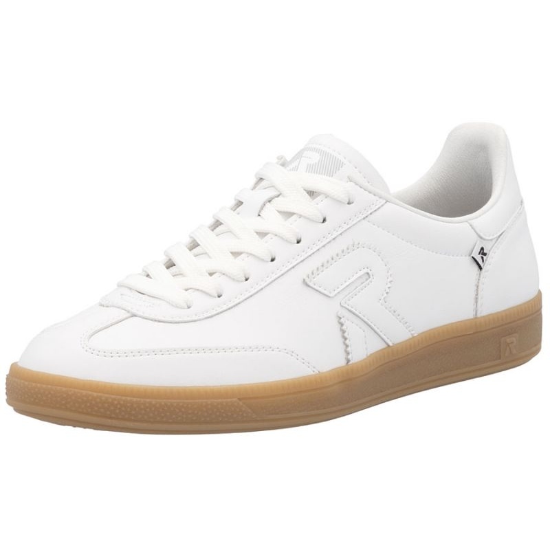 Białe buty Rieker W2200 łączą w sobie sportowy i casualowy styl, co czyni je idealnym dodatkiem do wielu stylizacji. Okrągły nosek oraz niskie wykończenie dodają im nowoczesnego charakteru, a beżowa podeszwa świetnie kontrastuje z białą cholewką, tworząc harmonijną całość.