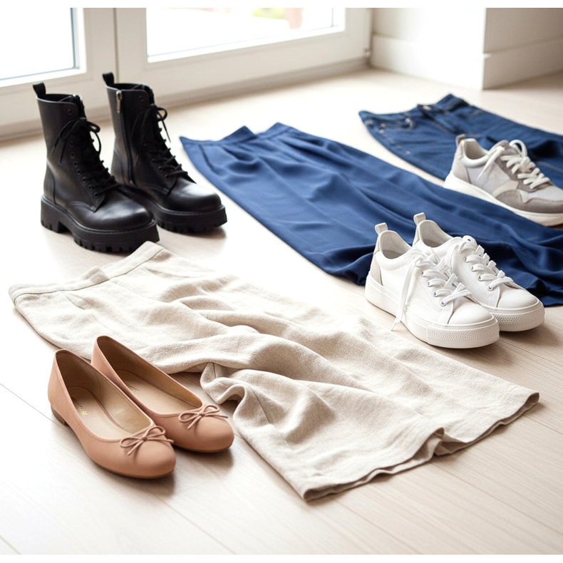 Warto też unikać masy oprawnych, masywnych butów do eleganckich wide-leg z delikatnego materiału — kontrast między ciężkim obuwiem a lekką tkaniną może być niespodziewanie niekorzystny. Współgraj ze spodniami: lekki materiał lubi lekkiego partnera, a cięższy denim znosił bardziej masywne obuwie.