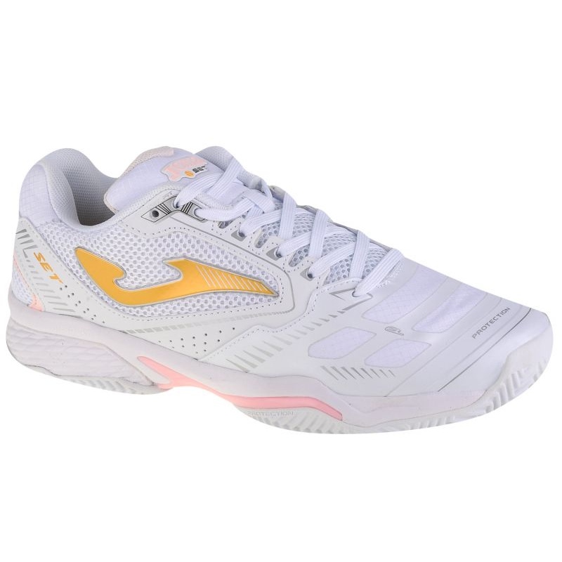 Buty Joma T.Set Lady 2202 W TSELS2202P — damskie, niskie buty tenisowe w kolorze białym, stworzone z myślą o grze na kortach ziemnych. Łączą elegancki wygląd z funkcjonalnością niezbędną podczas szybkich zwrotów i długich treningów.