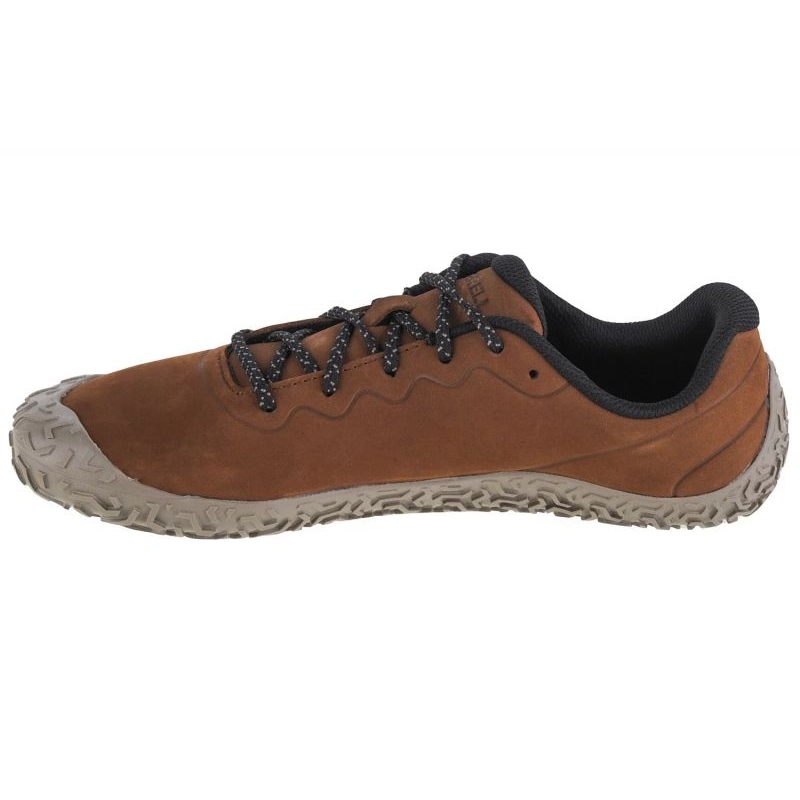 Buty Merrell Vapor Glove 6 LTR M J067863 w kolorze brązowym to doskonały wybór dla mężczyzn, którzy cenią sobie styl oraz wygodę na co dzień. Te niskie, sportowe modele doskonale sprawdzą się zarówno podczas miejskich wędrówek, jak i w luźniejszych, codziennych sytuacjach.