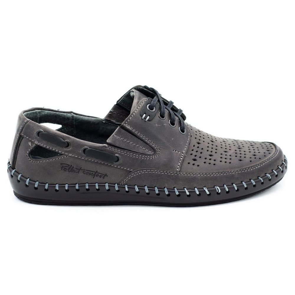 Polbut Polbut Buty męskie mokasyny ażurowe J69L szare