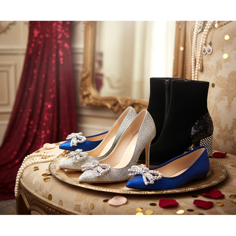 Sylwester to czas błysku i glamouru. Możesz pozwolić sobie na odważniejsze wybory – brokatowe szpilki, buty z błyszczącymi aplikacjami czy metaliczne sandały. To jedna noc w roku, kiedy błyszczenie jest nie tylko dozwolone, ale wręcz wskazane. Jeśli planujesz intensywną zabawę do rana, zabierz zapasowe wygodniejsze buty.