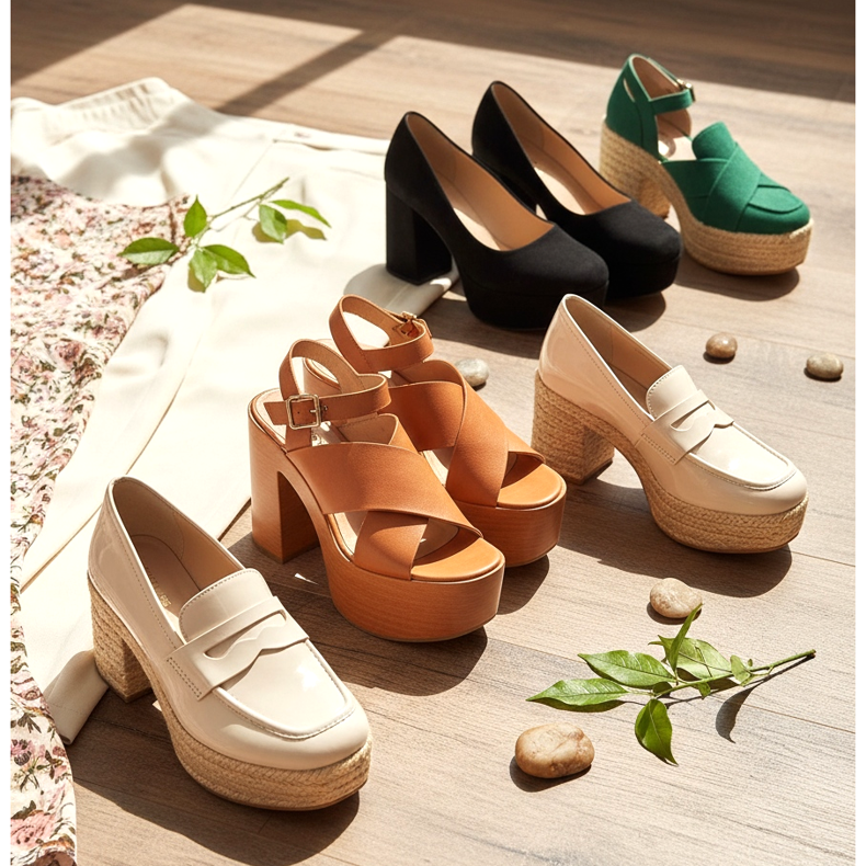Kolorystyka platform na wiosnę 2026 to przede wszystkim naturalne odcienie – beże, karmelowe brązy i delikatne różowe barwy. Nie brakuje jednak akcentów w postaci żywej zieleni czy klasycznej czerni, która pasuje do wszystkiego.
