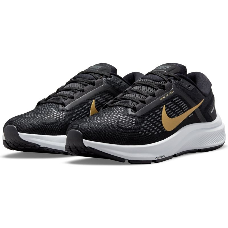 Dzięki eleganckiemu, czarnemu kolorowi z białymi i złotymi akcentami, Nike Air Zoom Structure 24 nie tylko doskonale sprawdzą się na trasie, ale również będą stylowym uzupełnieniem Twojej sportowej garderoby.