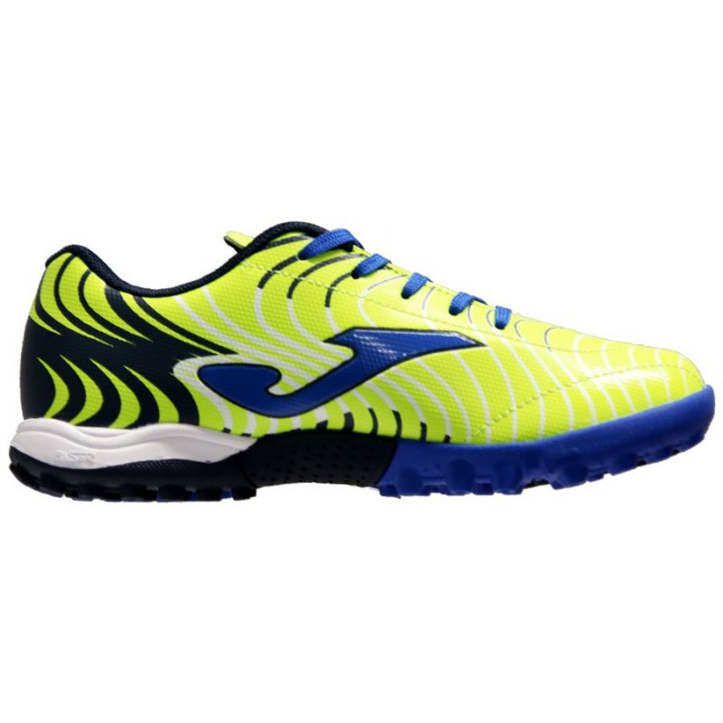Buty piłkarskie Joma Super Copa Jr 2011 TF (model SCJS.2011.TF) to idealny wybór dla młodych adeptów piłki nożnej, którzy chcą rozwijać swoje umiejętności na sztucznej nawierzchni. Ten niski model wyróżnia się nie tylko wyjątkową kolorystyką w intensywnym żółtym odcieniu, ale także doskonałym wykonaniem, które zapewnia komfort i stabilność podczas gry.
