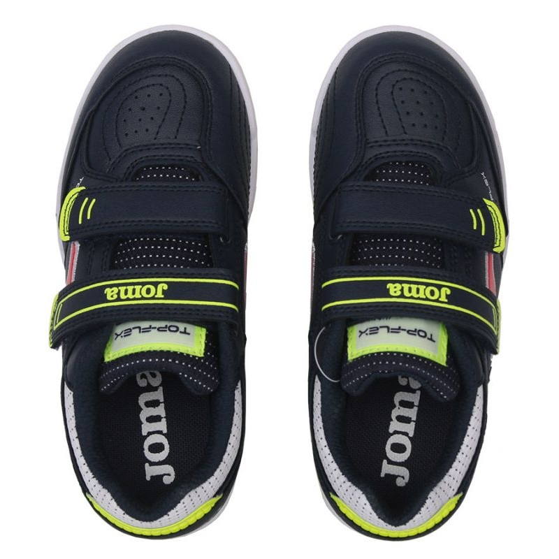 Buty piłkarskie Joma Top Flex 2203 Jr TPJS2203INV w kolorze niebieskim to doskonały wybór dla młodych miłośników gry w piłkę nożną. Przeznaczone do gry na hali, oferują doskonałą przyczepność i komfort podczas każdych intensywnych meczów i treningów.