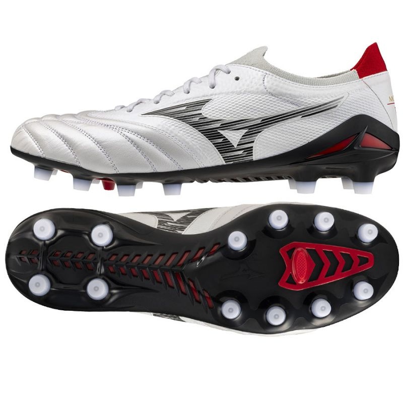 Odkryj moc gry w piłkę nożną z butami piłkarskimi Mizuno Morelia Neo IV Beta Elite FG M. Te wyjątkowe, białe korki zostały stworzone z myślą o profesjonalnych zawodnikach, którzy poszukują najwyższej jakości w każdym detalu. Wykonane z połączenia naturalnej skóry i syntetyków, oferują doskonałą wygodę oraz wsparcie podczas intensywnych meczów na naturalnej murawie.
