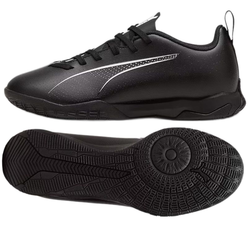 Buty piłkarskie Puma Ultra 5 Play IT 107913-02 w kolorze czarnym to idealny wybór dla małych miłośników piłki nożnej, którzy chcą rozpocząć swoją przygodę z tym sportem. Te halówki z premierowej kolekcji Fearless Pack łączą w sobie komfort i nowoczesny design, co czyni je świetnym wyborem do gry w halowych warunkach.
