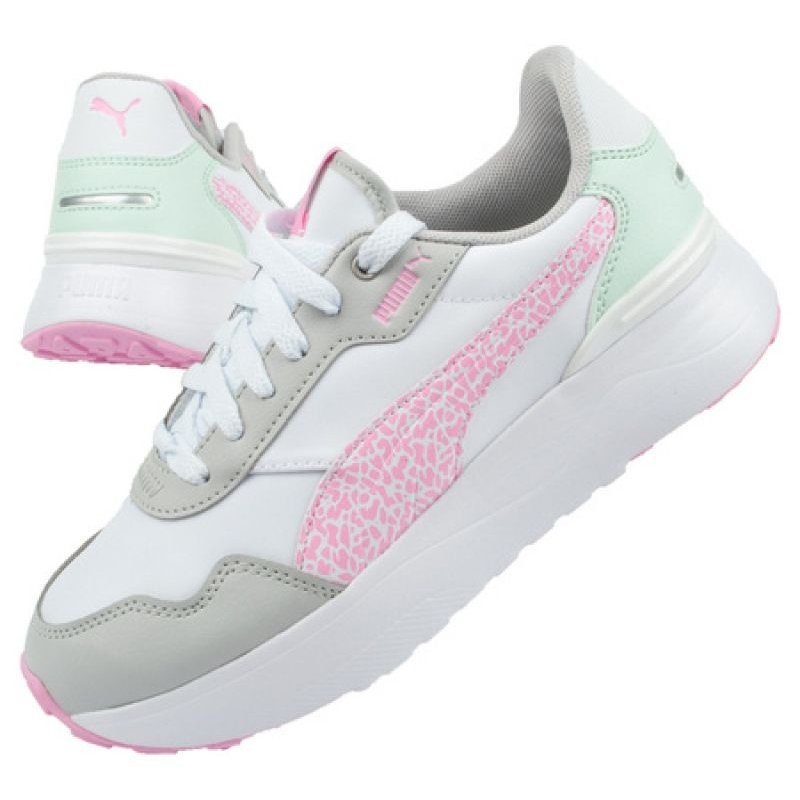 Eleganckie, miejskie sneakersy Puma R78 Voyage Summer w kolorze White z szarymi detalami. Niskoprofilowy fason o okrągłym nosku i klasycznym zapięciu na sznurówki — idealne do codziennych, sportowo‑casualowych stylizacji.