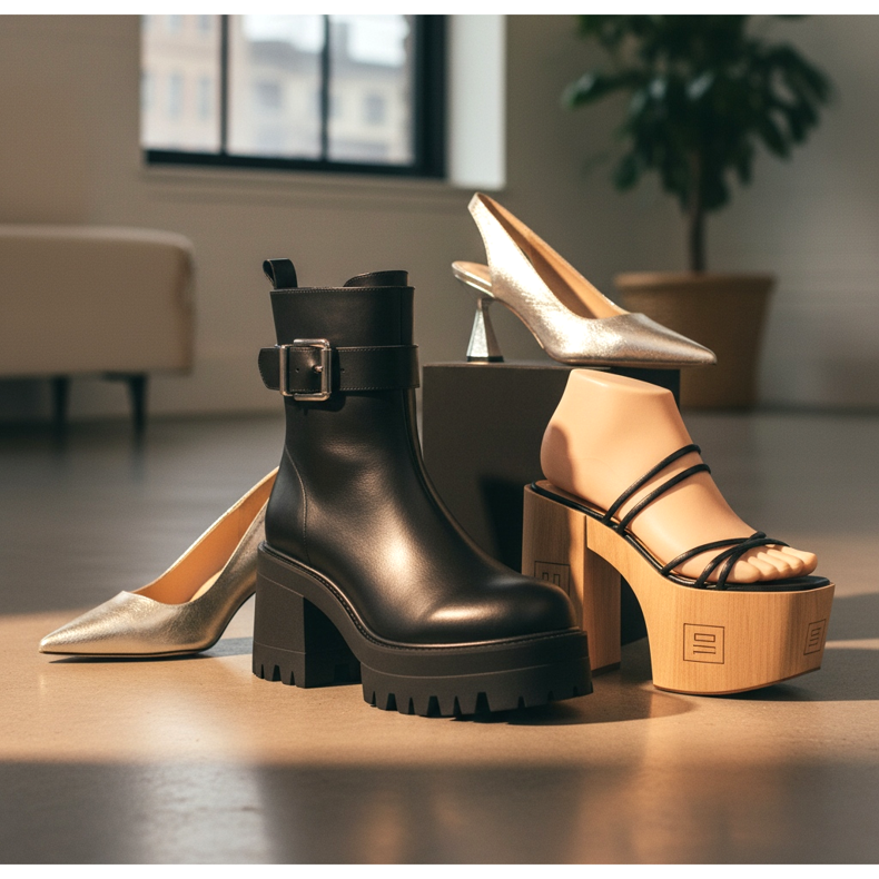 Pierwsza na liście powracających butów są platformy ze wzmocnionym noskiem i masywną podeszwą. W oryginale lat 2000 były najczęściej czarne lub srebrne, z metalową klamrą lub agresywną podeszwą lug. Współczesna wersja jest bardziej wyważona: ta sama masywność, ale elegantniejsze materiały i mniej krzykliwa stylistyka.