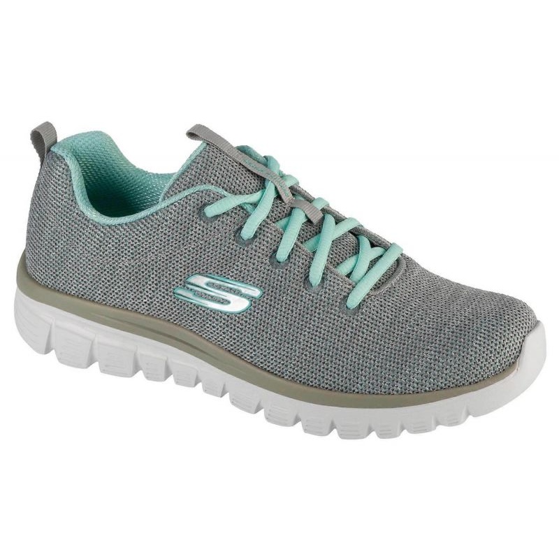 Buty Skechers Twisted Fortune 12614-GYMN to idealne rozwiązanie dla kobiet, które cenią sobie zarówno styl, jak i wygodę na co dzień. W eleganckim szarym kolorze z akcentami miętowymi, te sportowe buty doskonale wpasują się w każdą garderobę, dodając jej świeżego wyglądu.