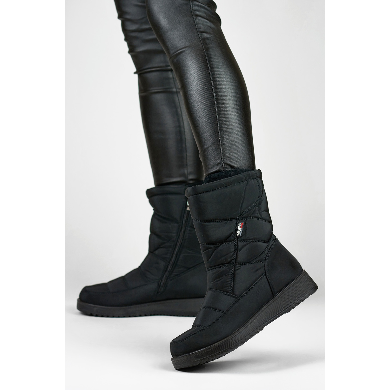 Śniegowce damskie ocieplane — pikowane, z futerkiem, w kolorze czarnym. Eleganckie i praktyczne buty, które zapewnią ciepło i wygodę w chłodne dni. Klasyczny, uniwersalny design pasuje do casualowych i miejskich stylizacji, a niska platforma dodaje kilku centymetrów bez utraty stabilności.