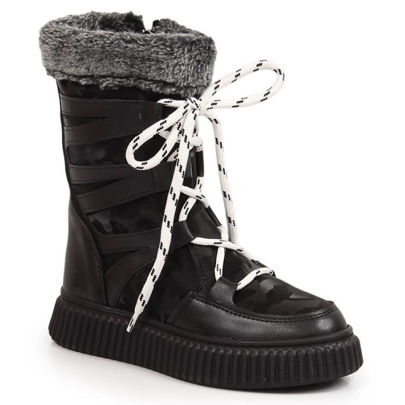 Producent: Potocki; model: Buty z futerkiem Potocki W WOL123A; kolor: czarny; materiał cholewki: skóra ekologiczna; wyściółka: ocieplenie/kożuch; zapięcie: suwak + sznurowadła.