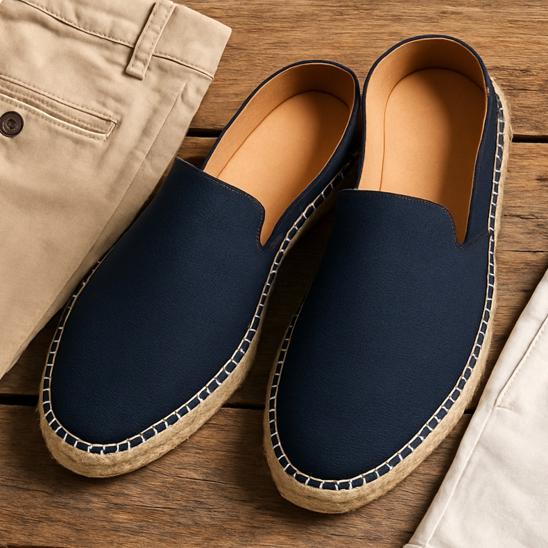 Espadryle to kultowe buty letnie, często wykonane z płótna lub lnu, z charakterystyczną plecioną podeszwą z juty lub sizalu. Męskie espadryle mogą mieć odkrytą piętę (slip-on mules) lub zamkniętą formę. Świetnie sprawdzają się w casualowych stylizacjach z krótkimi spodniami, chinosami lub lnianymi spodniami. Dostępne w stonowanych kolorach (beż, granat, khaki) lub z printem, stanowią obuwcze uosobienie letniego luzu. Warto wybierać modele z wkładką skórzaną dla większego komfortu.