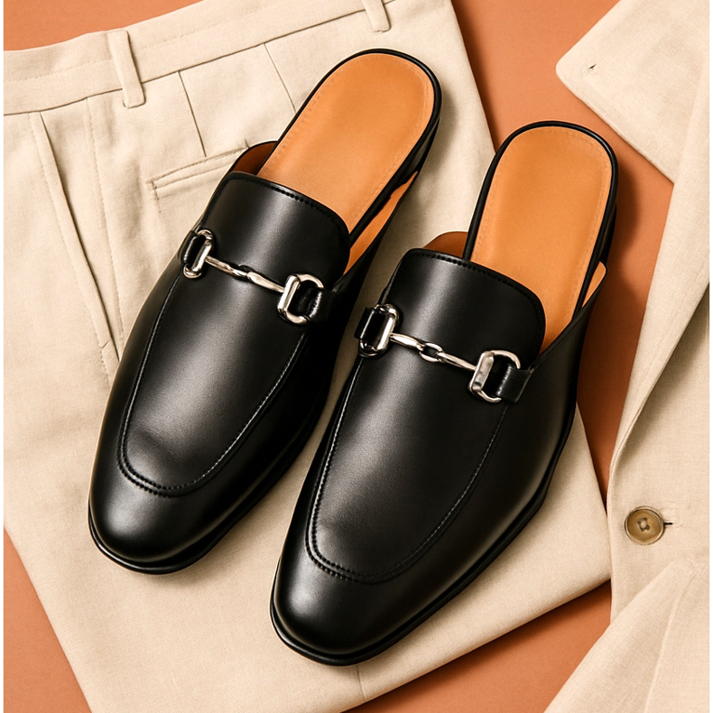 Skórzane męskie mule z odkrytą piętą to propozycja dla tych, którzy cenią sobie elegancję z nutą swobody. Najczęściej nawiązują do stylu loafersów lub monków, ale bez pięty. Wykonane z gładkiej lub tłoczonej skóry, mogą mieć klamrę, ozdobne przeszycia lub minimalistyczną formę. Doskonale komponują się z letnimi garniturami, lnianymi marynarkami, chinosami i koszulami. To wybór dla odważnych mężczyzn ceniących włoski luz i nowoczesną interpretację klasyki.