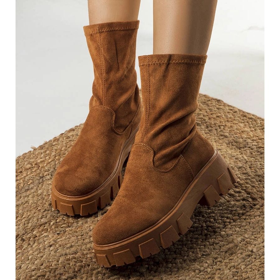 Szczegóły: Camelowe botki damskie Makayla brązowe