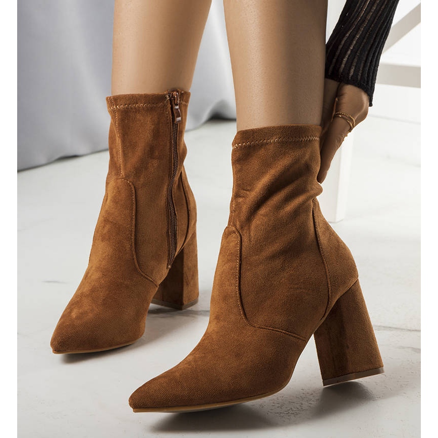 Szczegóły: PA1 Camelowe botki na słupku Kensley brązowe