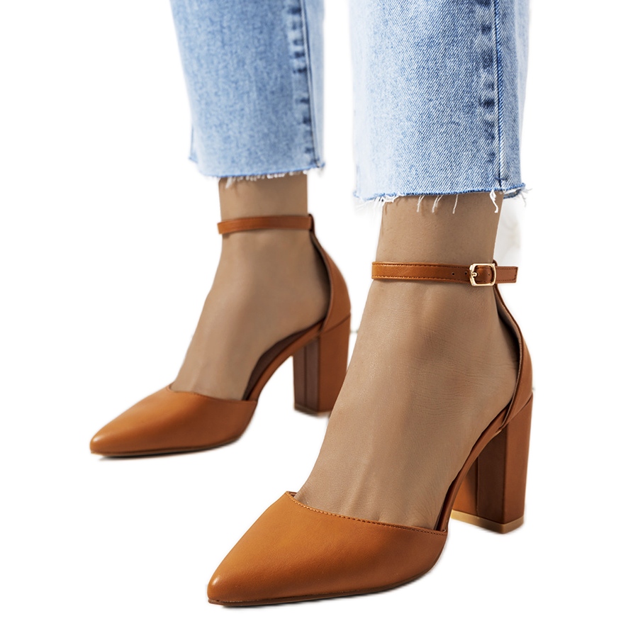 Szczegóły: Camelowe czółenka na słupku Jorine brązowe
