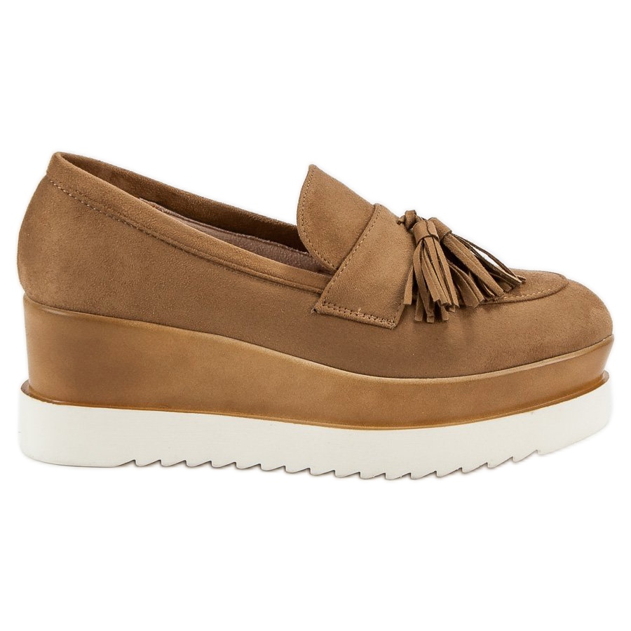 Corina Corina Camelowe Mokasyny Na Koturnie brązowe