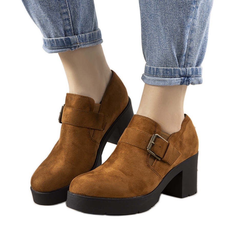 Szczegóły: Camelowe półbuty na słupku Leonie brązowe