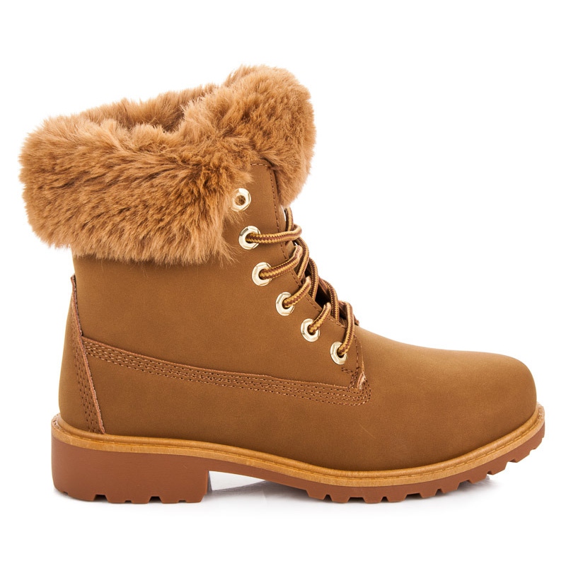 Szczegóły: Queen Vivi Camelowe traperki z futerkiem brązowe