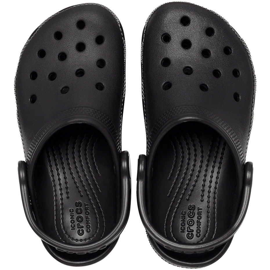 Chodaki dla dzieci Crocs Kids Classic Clog (czarne) 206991 — wygoda, którą pokocha każde dziecko. Lekka, odporna na zabrudzenia konstrukcja z opatentowanego tworzywa Croslite™ gwarantuje amortyzację i dopasowanie do stopy, a profilowane wnętrze z właściwościami antybakteryjnymi zapewnia higienę i komfort przez cały dzień. Podeszwa z materiału Croslite™ jest odporna na ścieranie i antypoślizgowa, co zwiększa bezpieczeństwo podczas zabawy. Obrotowy pasek stabilizuje stopę, a odporność na zapachy oraz łatwość czyszczenia sprawiają, że buty idealnie nadają się do codziennego użytkowania — do przedszkola, na plac zabaw, nad wodę czy do ogrodu.