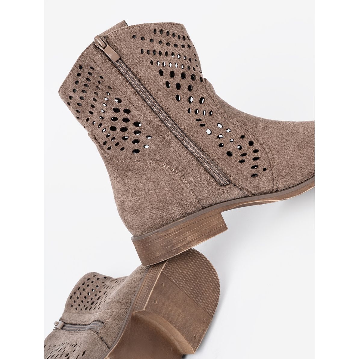 Seastar Seastar Ciemnobeżowe botki ażurowe w kowbojskim stylu